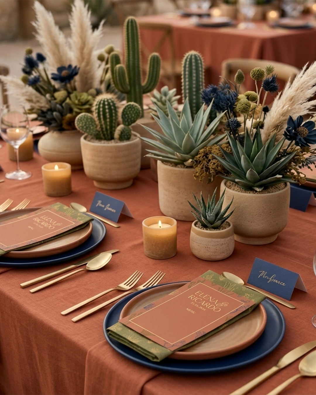 Diseño de menús, nombres de mesa, mapas de sitio, seating chart y cartelería de bienvenida.